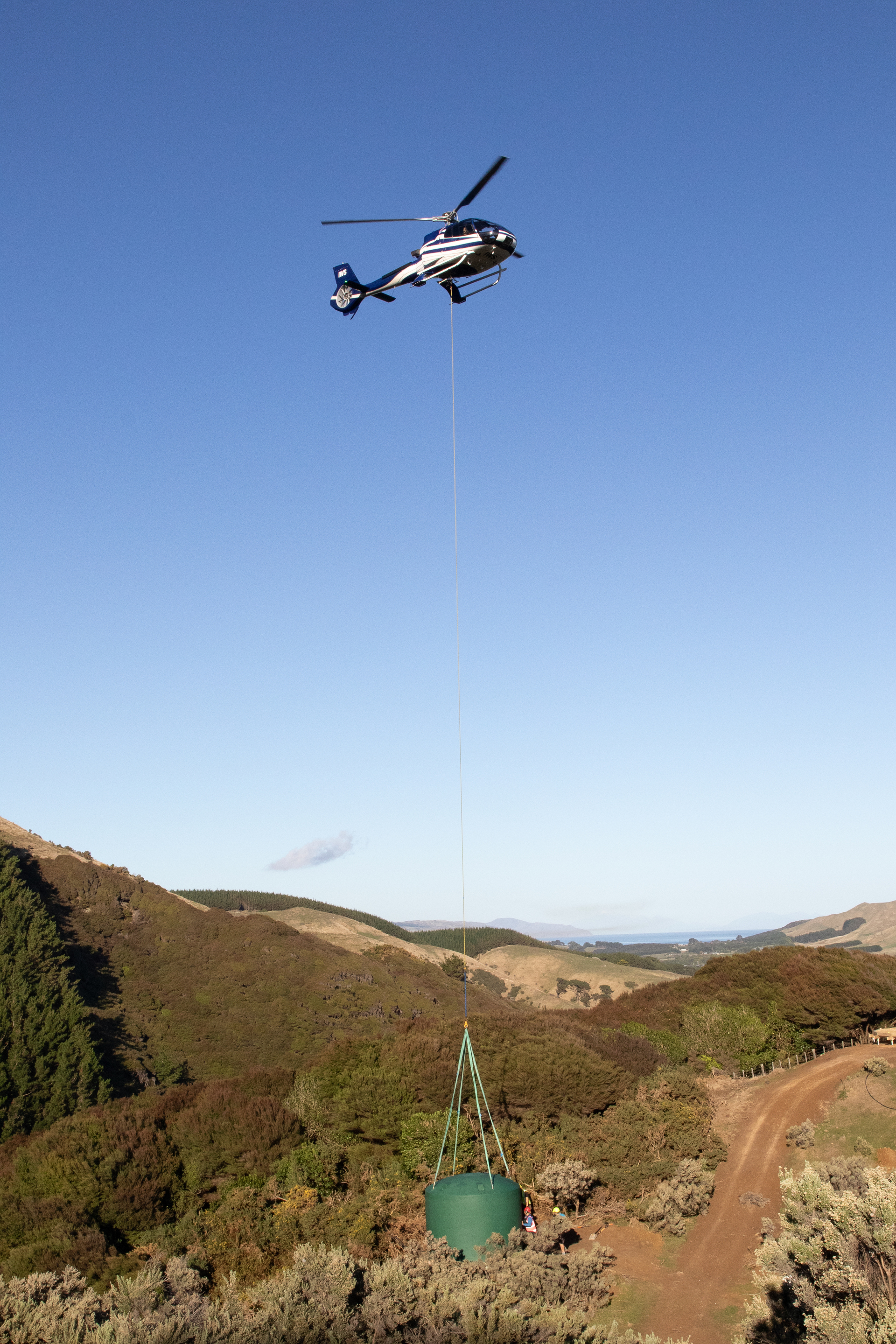 Last week the team at Wellington Helicopters picked it up and plonked it into place for us. It's now in position and ready to provide loyal service to our first guests in June.