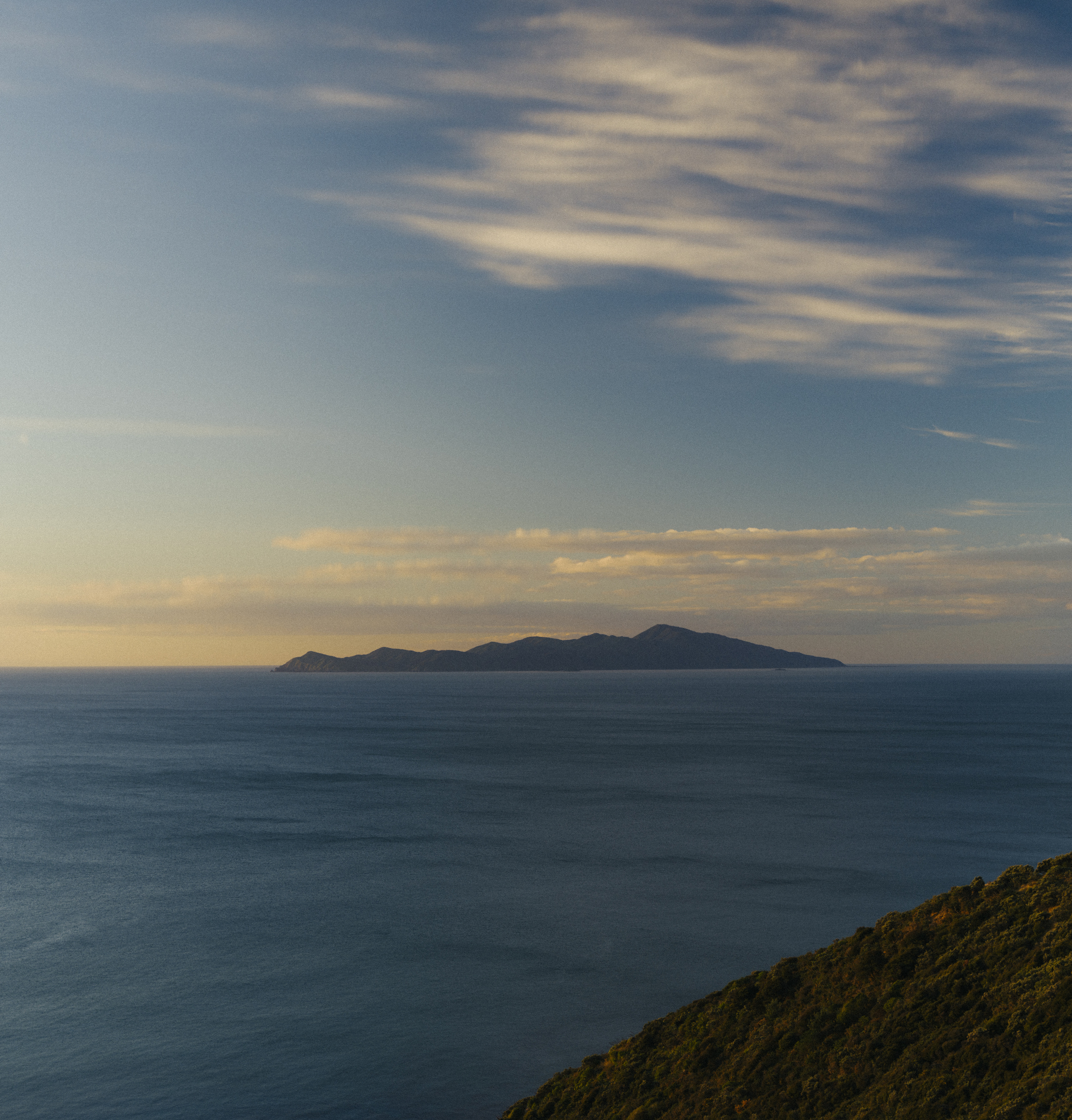 Outside, you'll find an array of speakers. Stare out at Kāpiti Island at sunset and enjoy a lush, surround sound, ambient journey composed just for us.